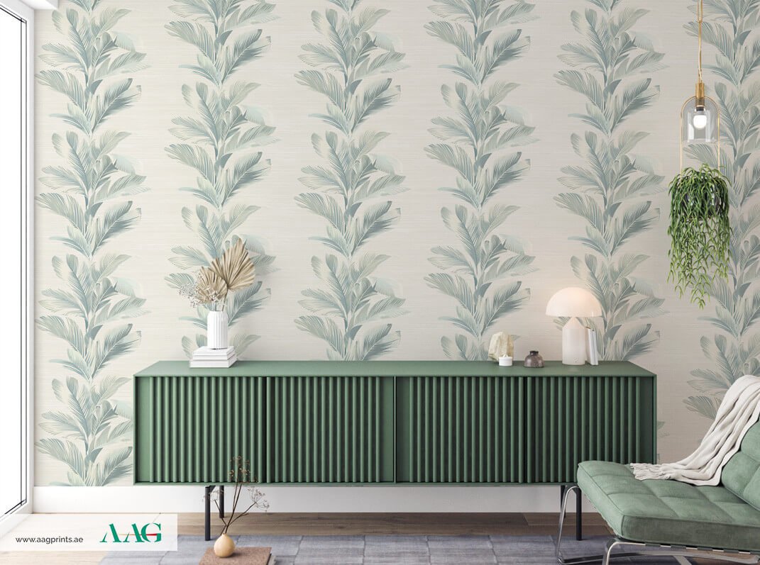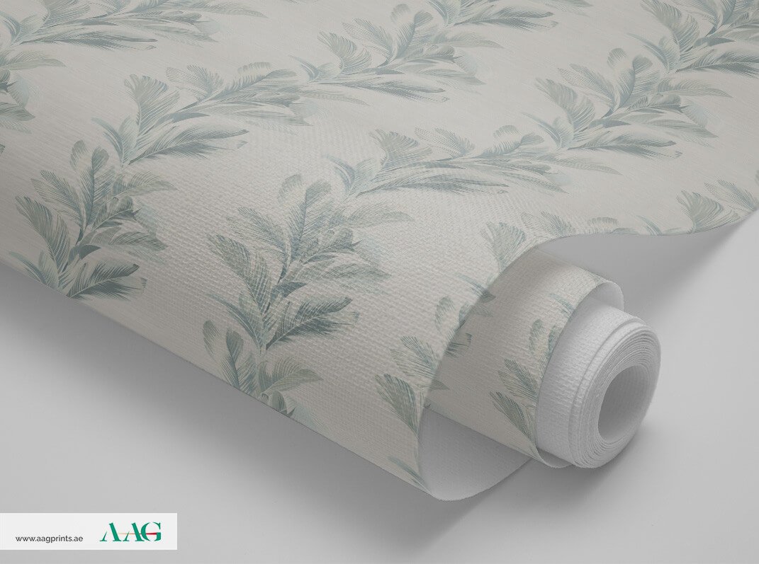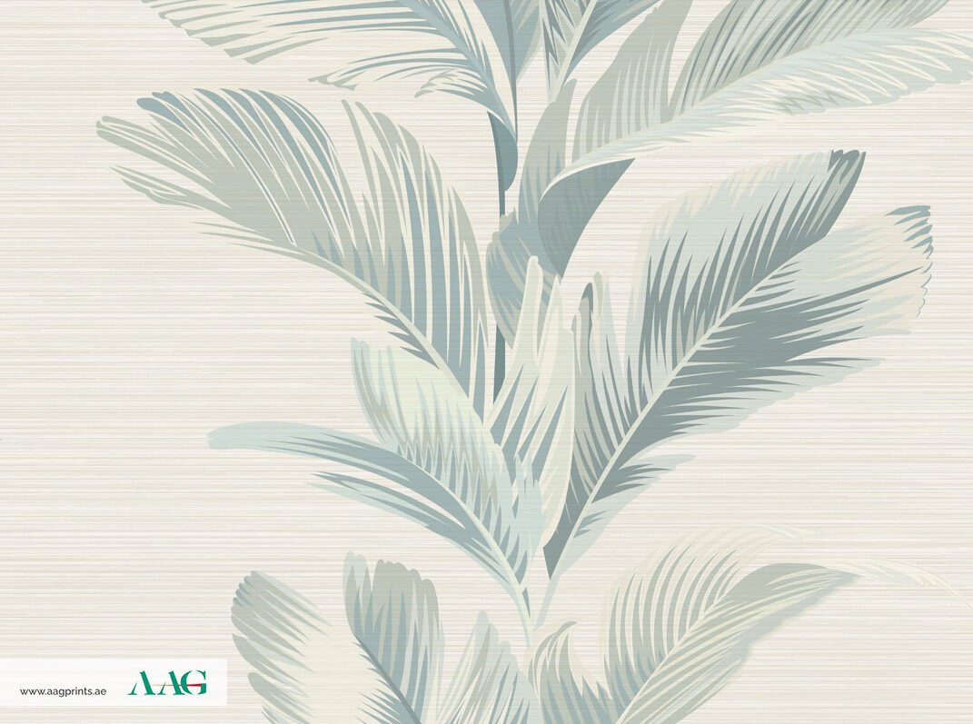 A calm floral design is created by the gentle ascent of elegant vertical columns of light blue-green feathery leaves over a delicately textured cream backdrop.