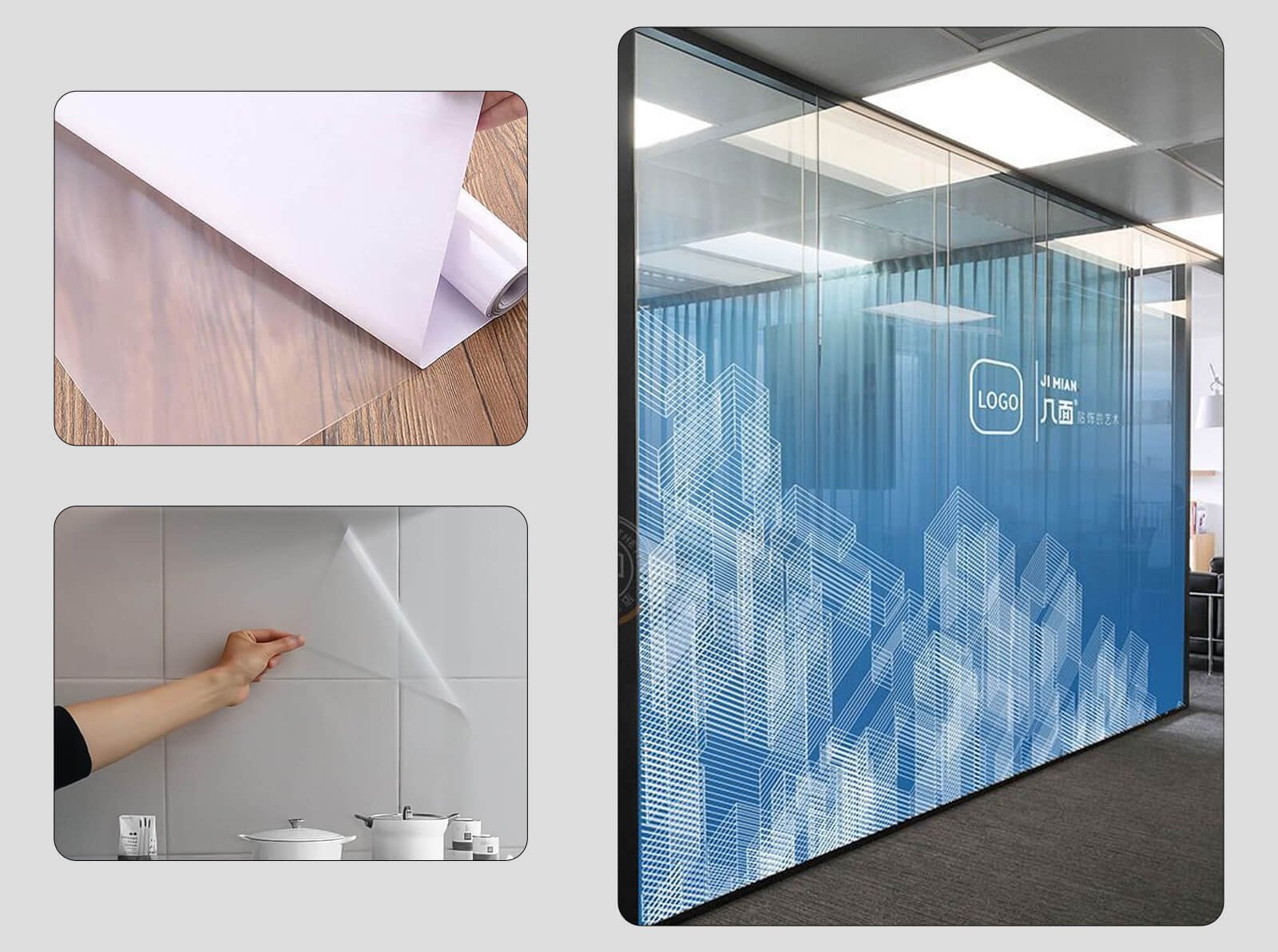 Frosted stickers mimic the appearance of frosted or etched glass, creating a semi-opaque or translucent effect. This adds a touch of elegance and sophistication to glass surfaces.